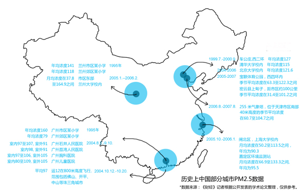 中國大氣PM2.5的污染非常嚴(yán)重, 中國環(huán)境科學(xué)研究院王瑋研究員等對(duì)中國部分城市地區(qū)大氣PM2. 5進(jìn)行了近10 余年的監(jiān)測,結(jié)果發(fā)現(xiàn)北京、廣州等大城市PM2.5 、PM2.0 的質(zhì)量濃度均超過了100微克/立方米 。中國環(huán)境監(jiān)測總站吳國平研究員等對(duì)我國廣州、武漢、蘭州、重慶4個(gè)城市的大氣PM2.5 污染水平進(jìn)行了監(jiān)測,結(jié)果表明這些城市的PM2. 5水平普遍超過了美國新標(biāo)準(zhǔn)的2到8倍。